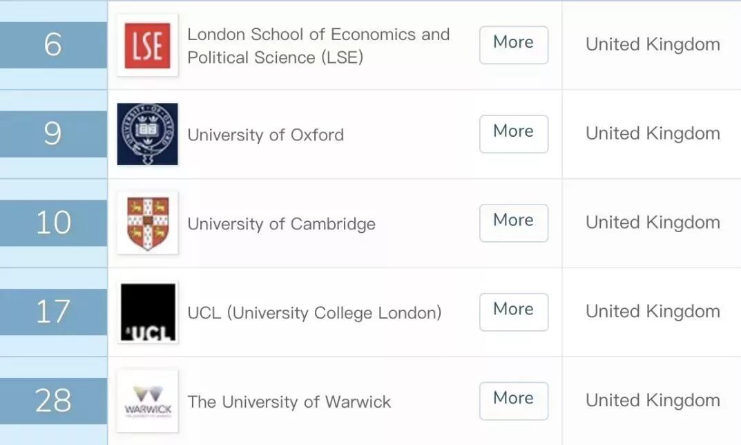 2019QS英国排名深入解读,这是专业中的高富帅?