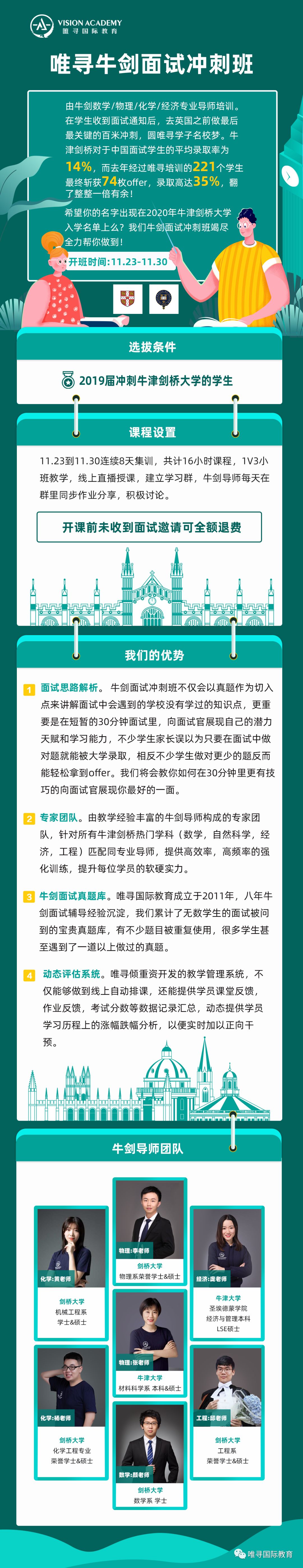 · 8年辅导牛津剑桥申请经验,团队帮助185位学员拿到牛剑录取,带领团队培育出超过1000名世界前50知名大学录取生,被尊称为“剑桥教父”