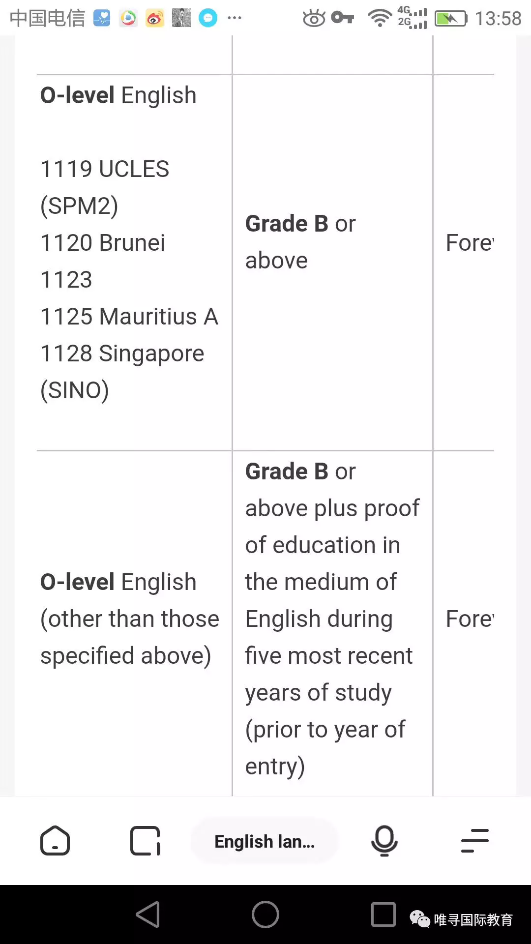 其余所有学校均接受olevel语言成绩,包括牛津!!!